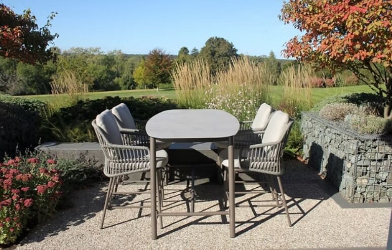- This set comes with 4, 2-cushioned, Alicante Terre high dining chairs and 1, Manolo high ceramic dining table 180 x 90cm