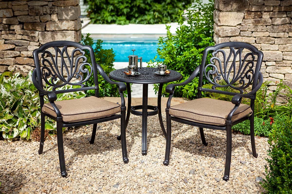 Morning coffee, afternoon tea, right though to a night cap under the stars. The Amalfi Bistro will quickly become a part of your outdoor living. Combining elegant, classic curves with a solid, smooth finish this two seat and table set can be left outside in all seasons and still look beautiful in years to come. This set coordinates beautifully with other dining and lounging options in the full Amalfi collection. Supplied with attractive Weatherready® cushions and supportive slanted backs, our Amalfi chairs will ensure many relaxing moments on your balcony, patio or favourite sunny spot.