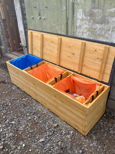 - Space-Saving Design: Ideal for those with limited space, this bench features a double-decker design allowing large recycling bags to be stored on top while caddies are neatly organized underneath.