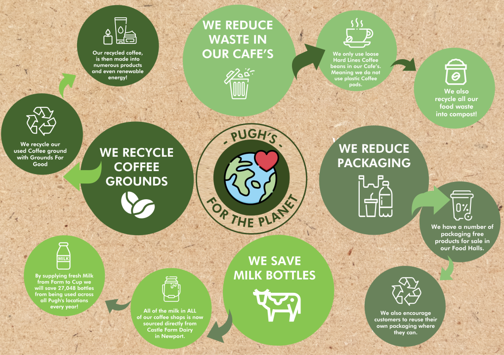 Here at Pugh’s, with the garden centre and our natural environment being at the heart of our business, we want to become as transparently sustainable as we can and take steps to help tackle the war on waste and the climate crisis.
